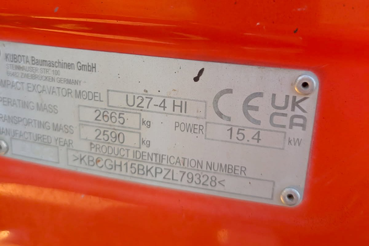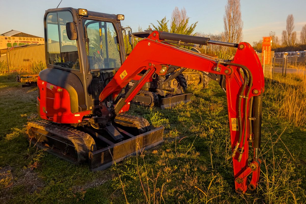 Vends mini pelle d'occasion Kubota U27-4 GLHI (2023) en très bon état sans aucun défaut de carrosserie.